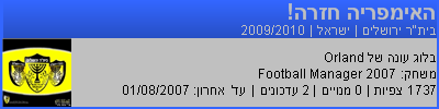 כותב הבלוג: Orland | משחק: Football Manager 2007 | מס' צפיות: 1738 | מס' מנויים: 0