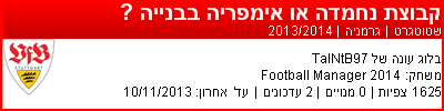 הבלוג יעסוק בקבוצה הגרמנית שטוטגרט, אני אנסה להפוך את הקבוצה לאימפריה, מקווה שאצליח .