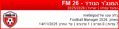 כותב הבלוג: metalgod | משחק: Football Manager 2026 | מס' צפיות: 6 | מס' מנויים: 0