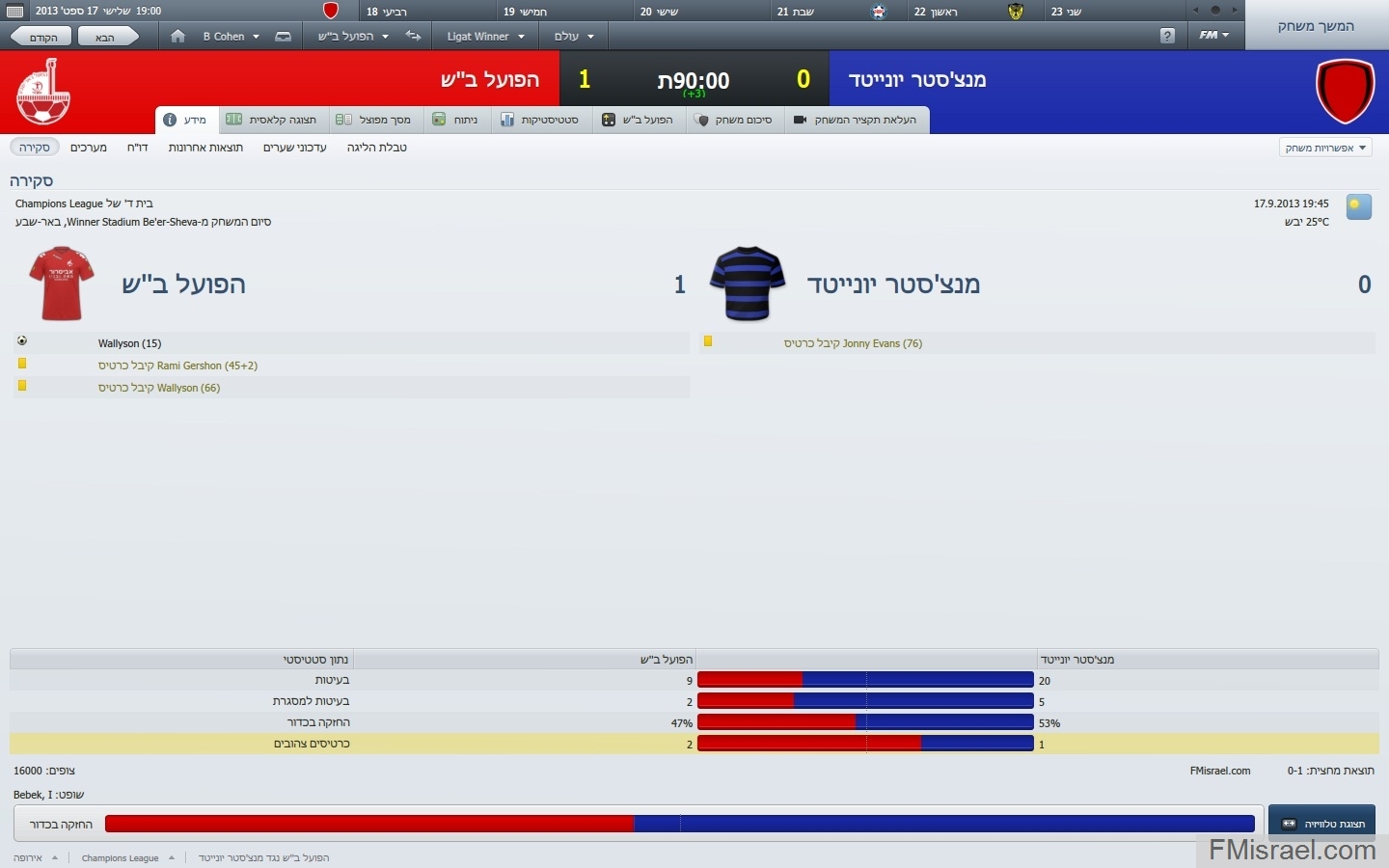תיאור ניצחון גדול שלי עוד מהימים בבית הספר עם הפועל ב"ש על מנצ׳סטר משער של וואליסון האגדי.